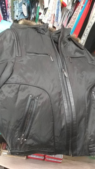 Куртка зимова, чоловіча, з підстібкою, хутряним капюшоном та карманами, "Giorgio Armani", 1 шт., чорного кольору.