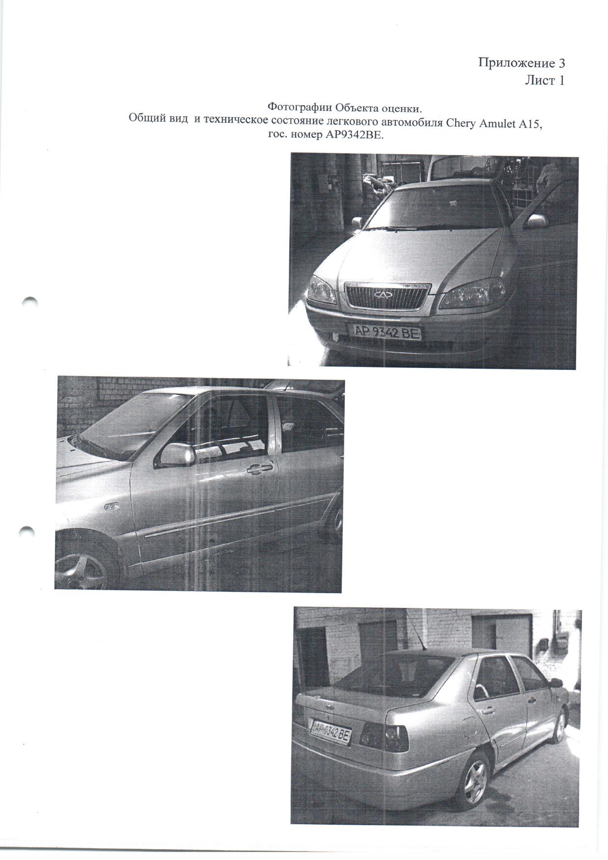 Транспортний засіб марки CHERY AMULET A 15, державний номер АР 9342 ВЕ, 2008 року випуску, бежевого кольору, тип пального - бензин, об'єм двигуна - 1597 см. куб., комплектація - базова.