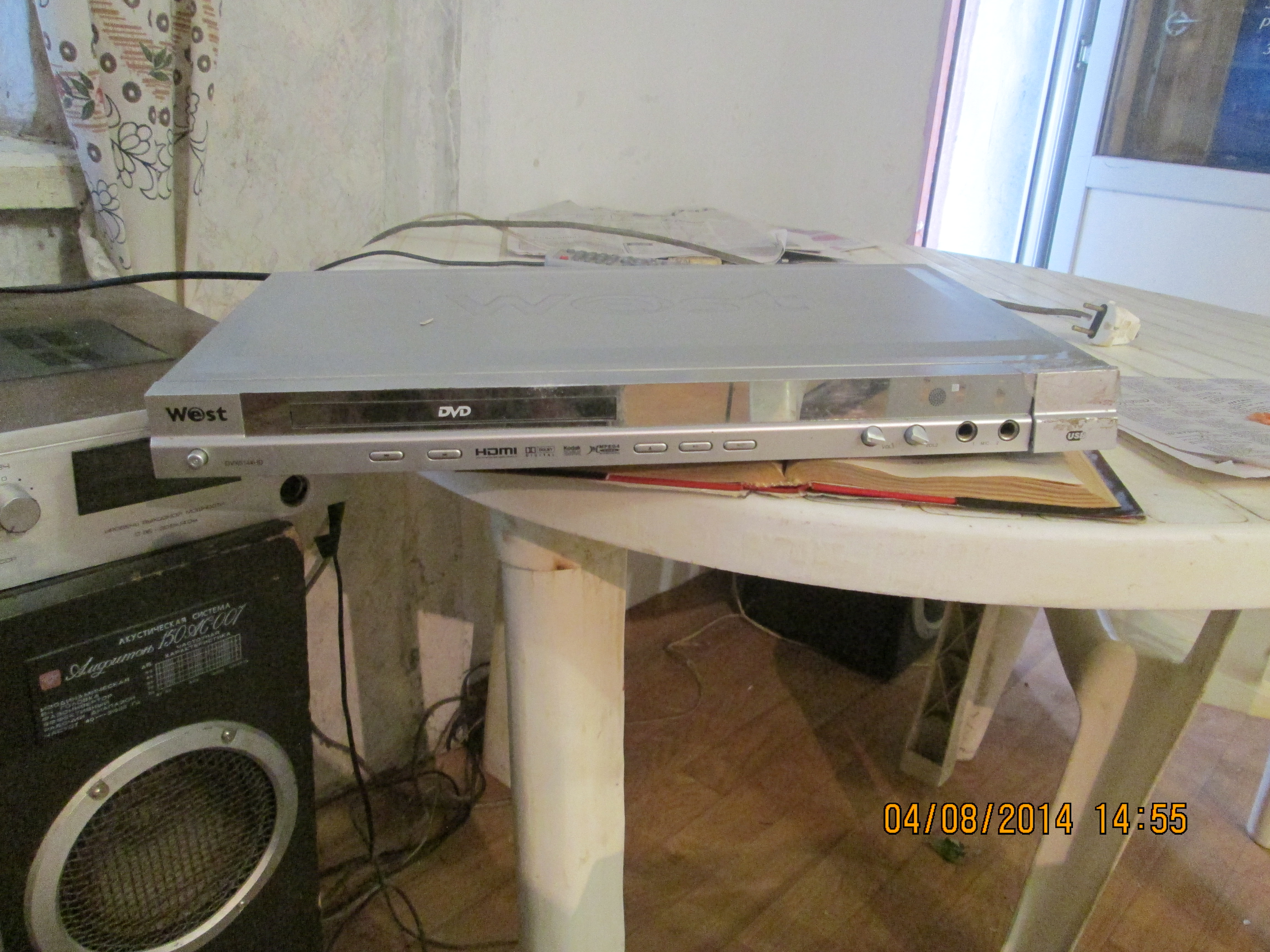 DVD програвач марки WEST, сірого кольору.