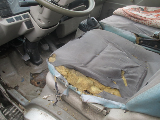 Пошкодження фарбувального шару, корозія силових елементів рами та кабіни, двигун та КПП заляпані мастилом, дві шини не придатні для подальшої експлуатації, пошкодження вітрового скла, бамперу, решітки радіатора, фари, бортів кузова