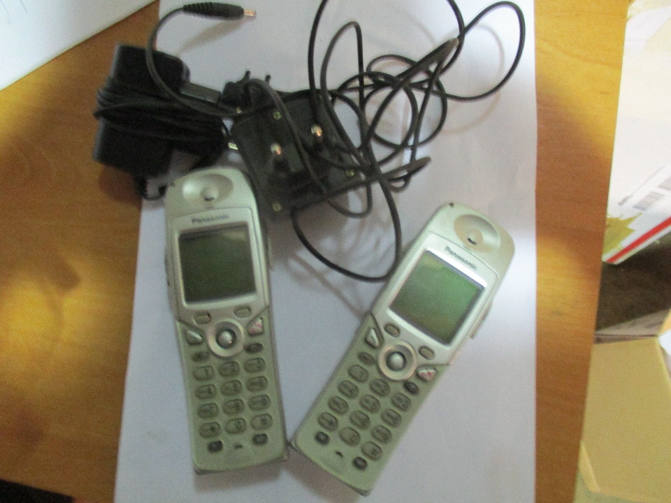 Радіотелефони марки «Panasonic» сріблястого кольору у кількості 2 шт, зарядні пристрої для мобільних телефонів чорного кольору марки «Soni Ericson», «Nokia» у кількості 2 шт. Санітарний стан та зовнішній вигляд телефонів та зарядних пристроїв незадовільний.