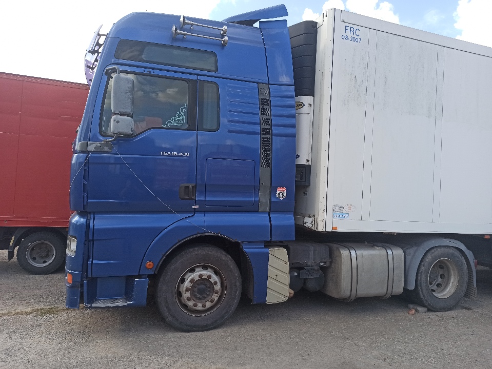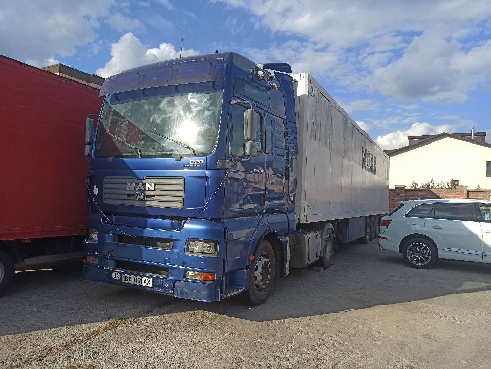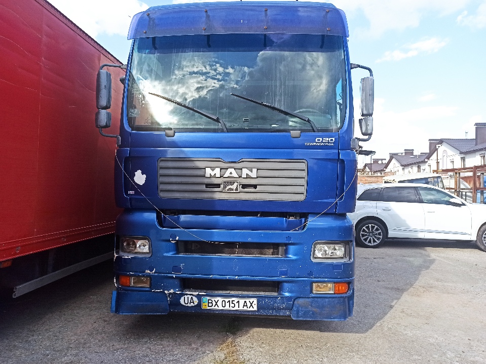 Сідловий тягач MAN TGA01, 2005 року випуску, д.н.з. ВХ0151АХ, номер шасі (кузова,рами): WMAH06ZZ85G176478. Транспортний засіб на ходу, проте перевірити справність комплектуючих двигуна, КПП та інших вузлів та агрегатів немає можливості. По кабіні та рамі пошкодження ЛФП, значні подряпини та незначна корозія. Пошкоджений передній бампер, тріщини підкрильників, вудсутня лампочка правої передньої фари. Салон у задовільному стані. Відсутня автомагнітола, динаміки. Зламана кришка холодильника. Акумулятори несправні. Ключі та свідоцтво про реєстрацію т/з в наявності.