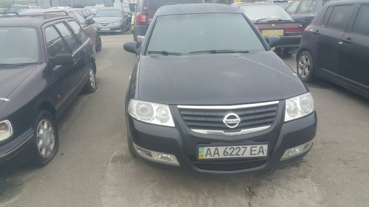 Автомобіль Nissan Sunny, реєстраційний номер АА6227ЕА, VIN/номер шасі (кузова, рами): KNMCC42H17P647846, легковий седан, 2007 року випуску, колір чорний, гума зимова, має сколи, подряпини, пошкодження ЛФП по всьому периметру кузова, покази одометру не встановлено, відсутні ключі та техпаспорт