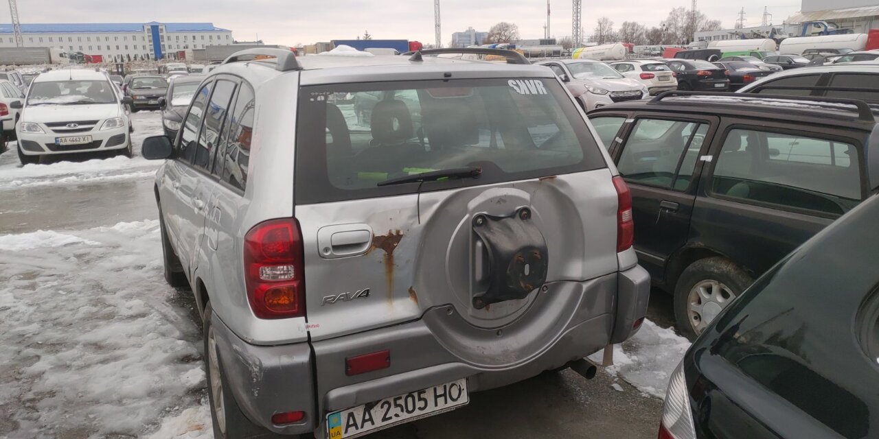 Транспортний засіб, автомобіль легковий, TOYOTA RAV4, 2004 р. в., колір сірий, номер об`єкта: JTEHH20V406106169, номер державної реєстрації: АА2505НО. Пошкодження лакофарбового покриття у вигляді подряпин, сколів та корозії по всьому периметру кузова автомобіля, технічний стан та показники одометра невідомі. Свідоцтво про реєстрацію та ключі відсутні.
