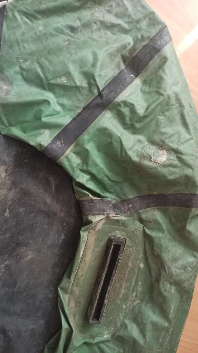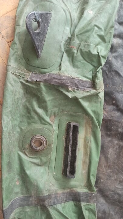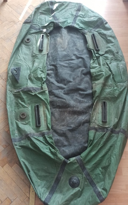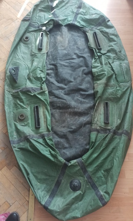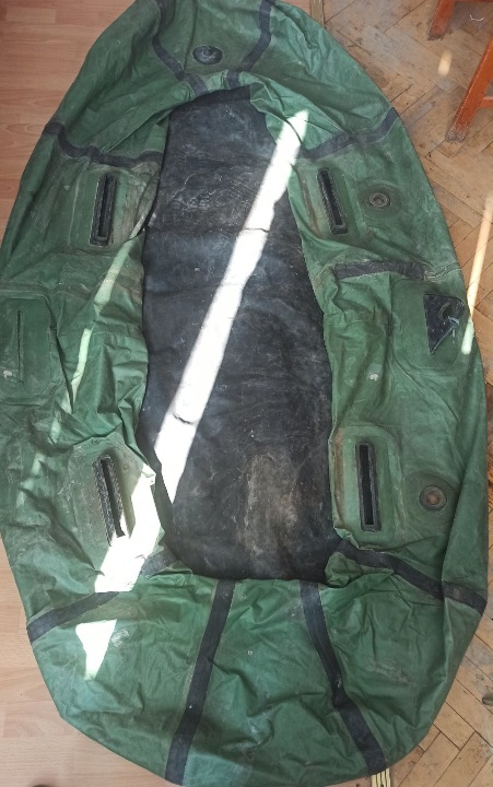 гумовий човен – зеленого кольору, б/в, із чорним дном, наявні фізичні пошкодження та потертості, в певних місцях наявні відшарування гуми, в надувному стані не перевірявся.