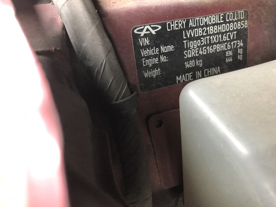 Транспортний засіб марки CHERY TIGGO 3, 2017 р.в., № шасі LVVDB21B8HD080858, об'єм двигуна 1598, колір - червоний, днз АІ7014НВ.