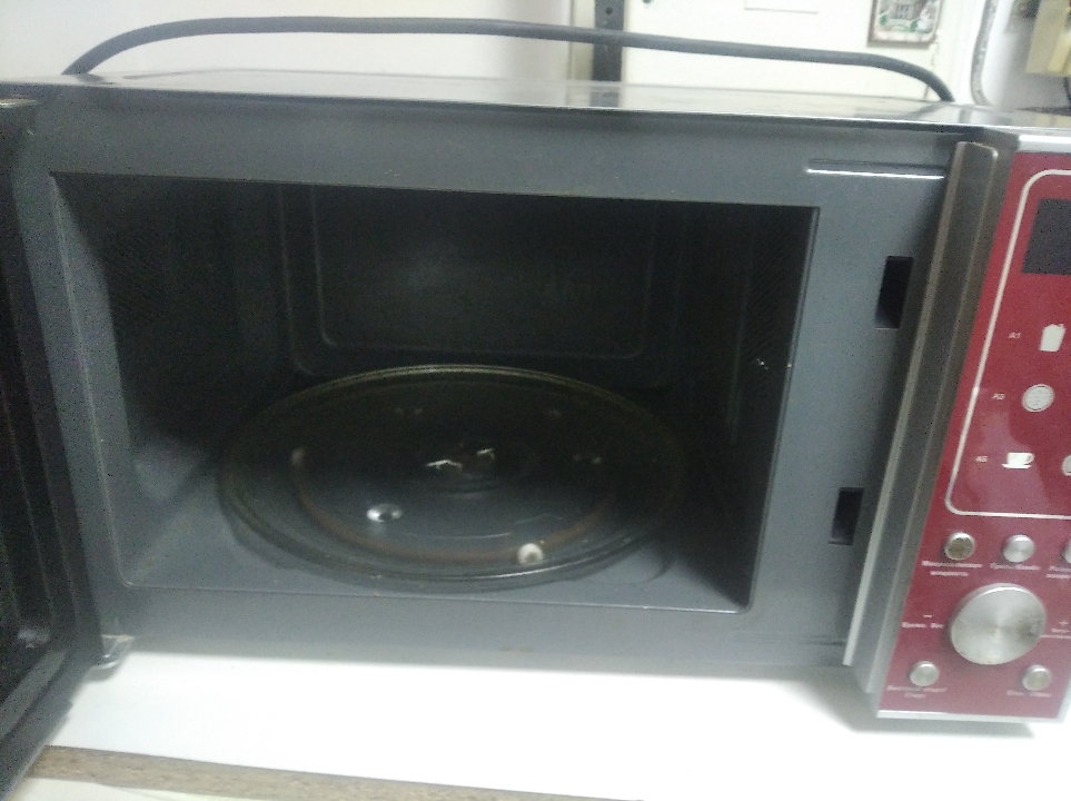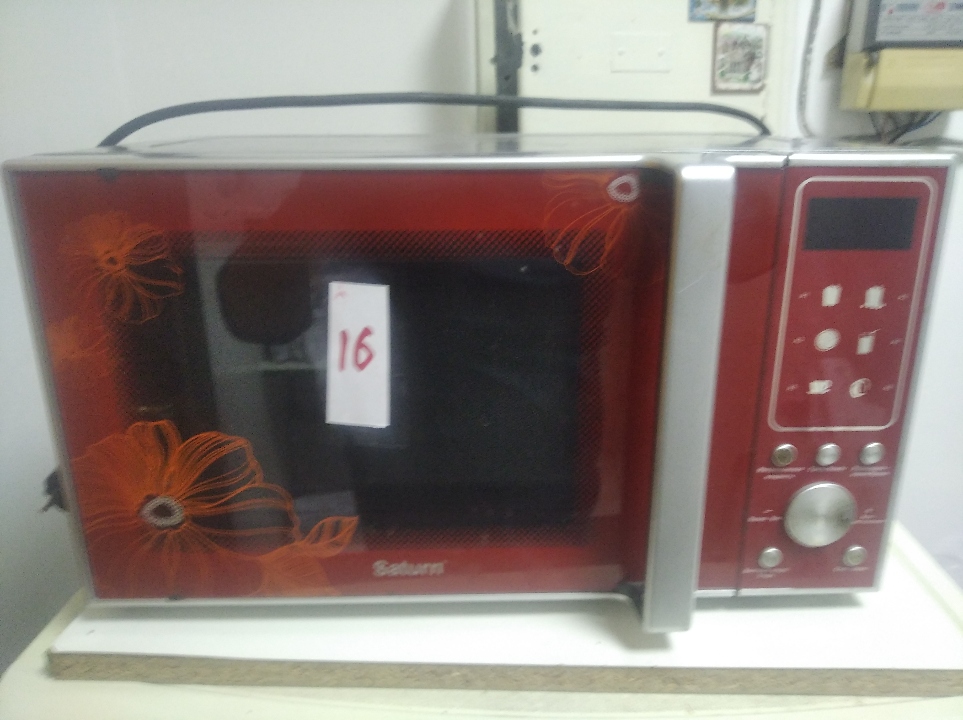 Мікрохвильова піч SATURN сріблясто-червоного кольору, б\у, корпус витертий, технічний стан не перевірявся.