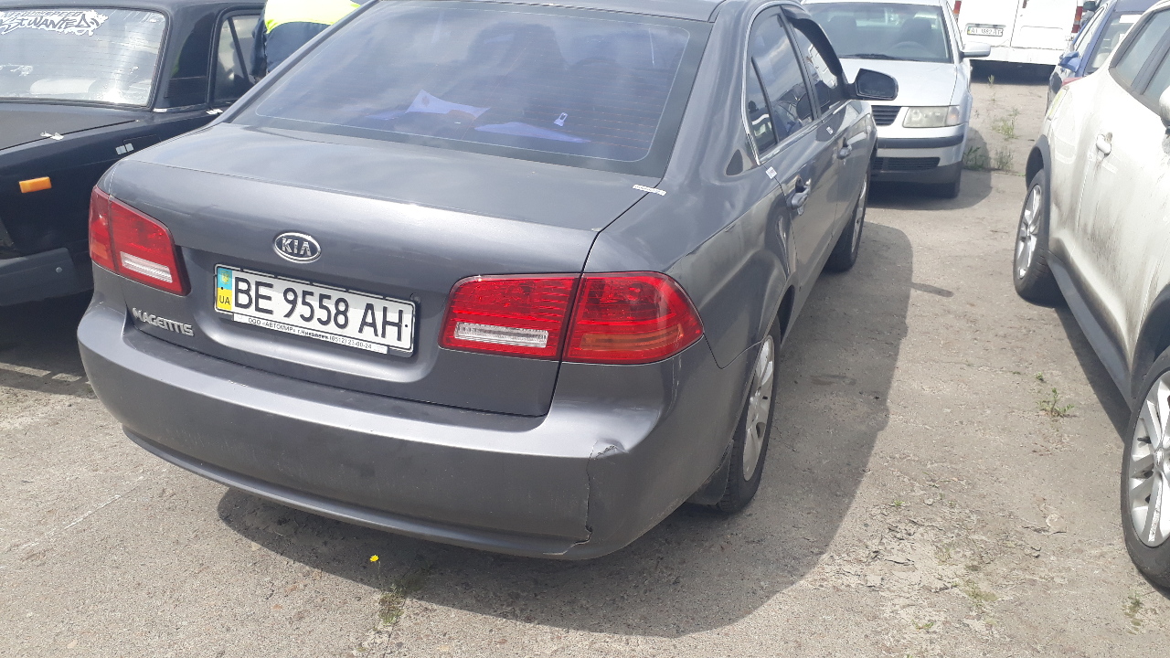 Транспортний засіб марки KIA модель MAGENTIS, 2007 року випуску, VIN: Y6LGE22227L001185, номер кузова: KNEGE222275127718, об’єм двигуна - 1998, колір - сірий, державний реєстраційний номер ВЕ9558АН, тип палива бензин, механічна трансмісія, салон: тканина, показник одометра (пробіг): невідомий, розмір коліс/дисків – R16, розмір резини – 205/60/R16.