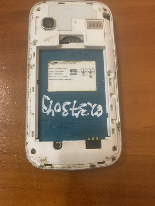 мобільний телефон марки "Samsung" без задньої кришки та батареї , пошкоджений , неробочий.