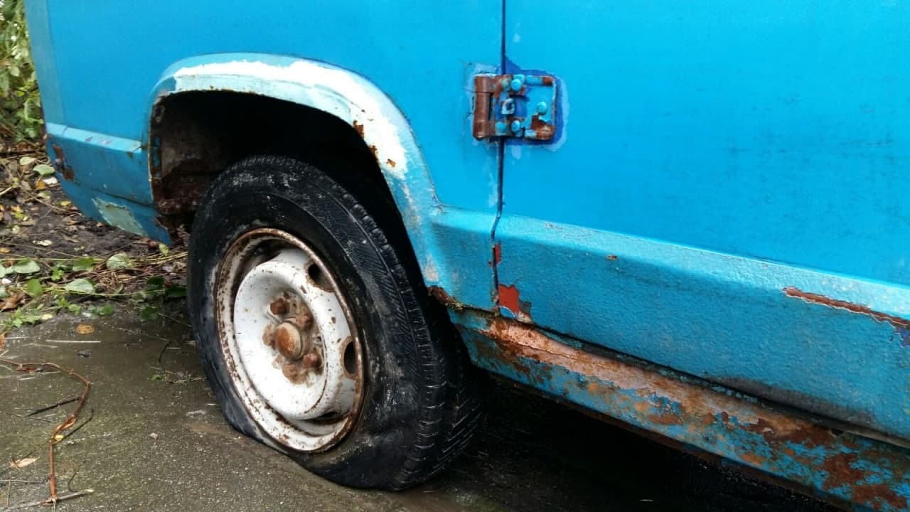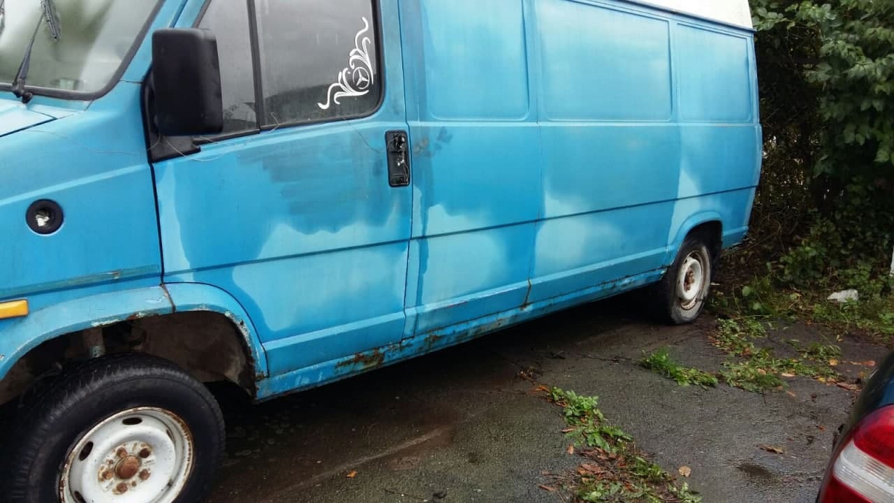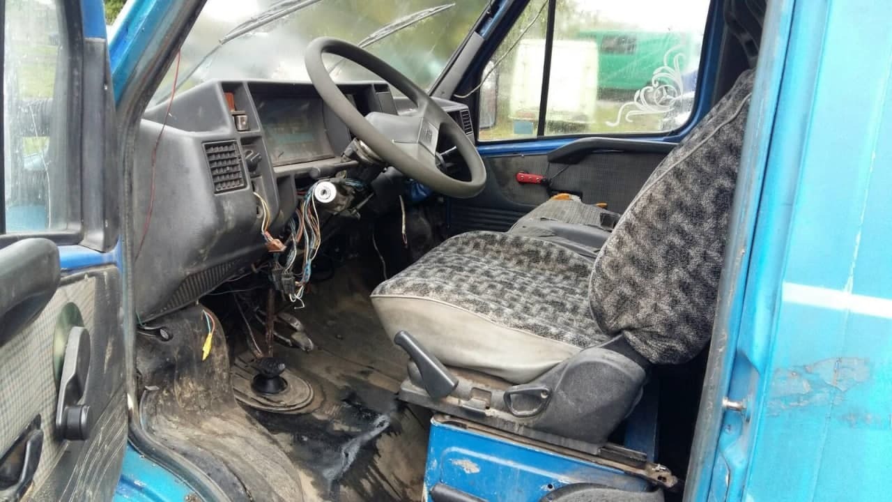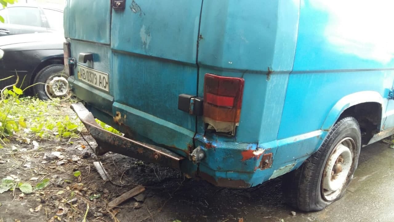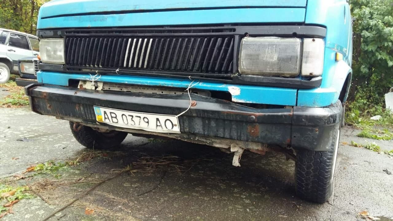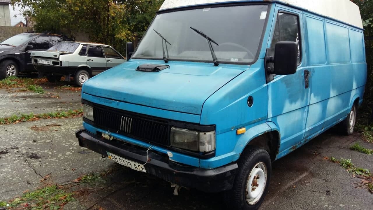 Автомобіль Fiat Ducato, ДНЗ АВ0379АО, VIN/номер шасі (кузова, рами): ZFA29000000304014, 2000 р.в., мікроавтобус, синього кольору, вид пального – дизель, об’єм двигуна не встановлений, пробіг – 330772, тип трансмісії – механ., колеса – 185/14, радіус – 14, диски – залізні; подряпини, потертості, плями, пошкодження по всьому салоні, вм’ятини, корозія, відколи по всьому кузові. Техпаспорт та ключі відсутні, знос гуми 80%, висота протектора не встановлена, диски коліс в незадовільному стані, по всьому кузову присутні пошкодження лакофарбного покриття, місцями здуття фарби та вм’ятини, корозія кузова, пороги мають вигнивші елементи, скло в тріщинах та царапинах, бампера в сколах потертостях та царапинах, освітлювальні прилади в незадовільному стані. Двірники скла відсутні. Салон грязний, не вистачає пластикових елементів, частково провисає електро проводка. Стан та комплектація двигуна не встановлені, рівні рідин не встановлені. Відсутні акб, запасне колесо.