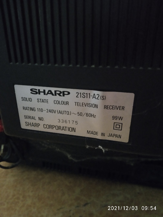 Телевізор SHARP 21S11-A2(s) вироблений в Японії, кольорове зображення, бувший у використанні, в непрацюючому стані, корпус чорного кольору