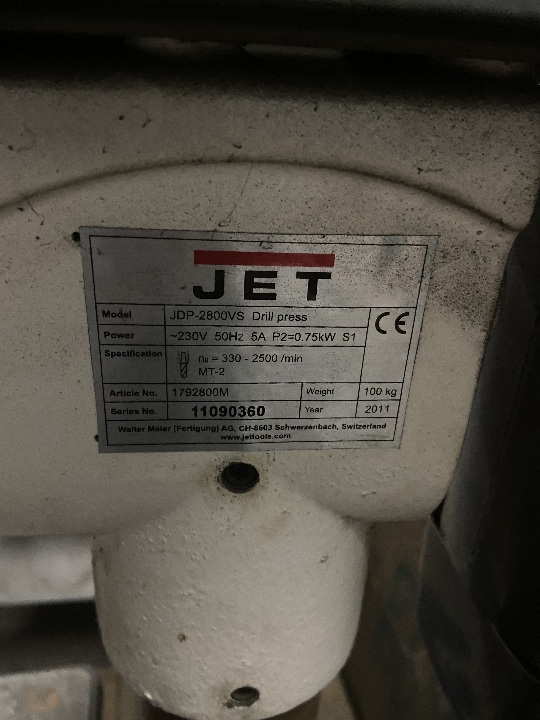 Верстат свердлильний 1,3-0,7 кВт, 230В, JET JDP-2800VS, б/в, робочий стан невідомий.