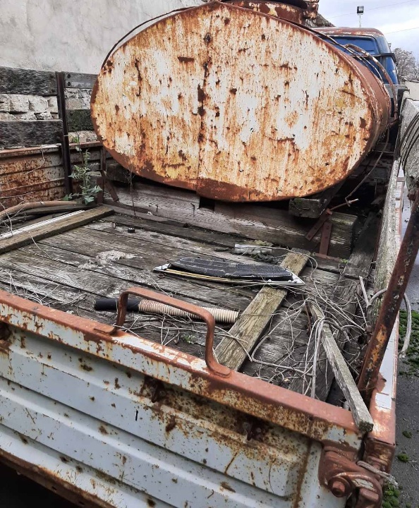 Колір: синій; маса без навантаження; 1750; об’єм двигуна: 2900 куб.см. Ключі та технічний паспорт відсутні. Доступ до салону відсутній, під капотом півністю розкомплектовано, відсутні всі агрегати та комплектуючі, коробка передач. Наявні пошкодження: по всьому периметру авто прояви корозії, в деяких місцях до дір, відколи ЛФК, подряпини, вм’ятини. На дверцях водія та передньому правому крилі сліди відновлювальних робіт та пофарбування, тріщина лобового скла, відсутні двірники протитуманні фари, ліве дзеркало заднього огляду. Через скло встановлено: в кабіні водія відсутнє дзеркало заднього огляду, два задніх скла, всі вимірювальні прилади, заднє сидіння, накладка під рулем, торпеда пошкоджена, сидіння водія та пасажирське - порвані, салон має підтікання води. В авто влаштована бочка жовтого кольору, яка вкрита корозією. Розбиті задні ліва та права фари, передній бампер, на кабіні водія відсутні дублюючі поворотники, відсутнє заднє праве внутрішнє колесо, гума має максимальний рівень зносу, порепана, у зв'язку з чим неможливо встановити марку та радіус гуми. Можливі скриті дефекти. Об'єм двигуна, вид пального, пробіг та комплектацію встановити неможливо.