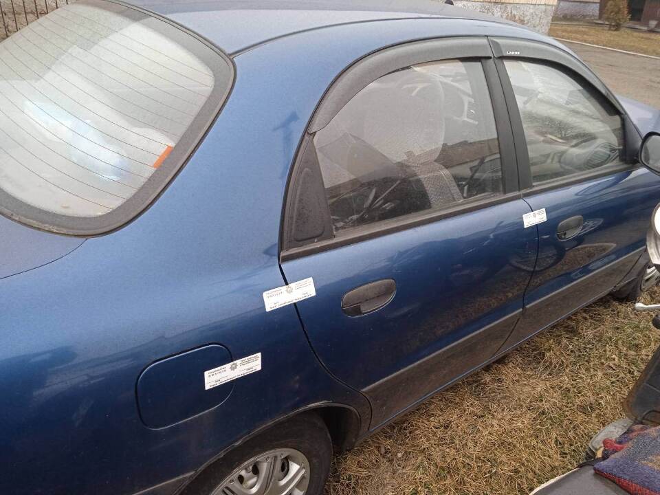 Легковий автомобіль марки ЗАЗ Sens 2009 р.в., д.н.з. СВ8596ЕС, тип КТЗ: легковий універсал – В, номер кузова: Y6DTF699P90211121, об’єм двигуна: 1386, тип пального: газ/бензин, тип КПП: механічна, показник одометра: 98323км, колір: синій. Автомобіль знаходиться в незадовільному стані. Пошкоджено капот, передній бампер, радіатор. Задні ліві двері мають вм’ятину. Наявні пошкодження лакофарбового покриття (сколи, потертості). Транспортний засіб потребує ремонту. Ключі в наявності. Свідоцтво про реєстрацію ТЗ відсутнє.