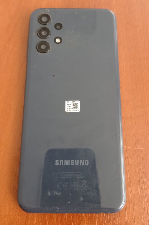 Телефон чорного кольору марки "Samsung" моделі "Galaxy А13" ІМЕІ1 - 352844253597236, ІМЕІ2 – 353067933597231, захисне скло телефона в незадовільному стані, наявна тріщина та сколи, без зарядного пристрою, робочий стан не перевірявся, бувший у використанні