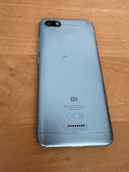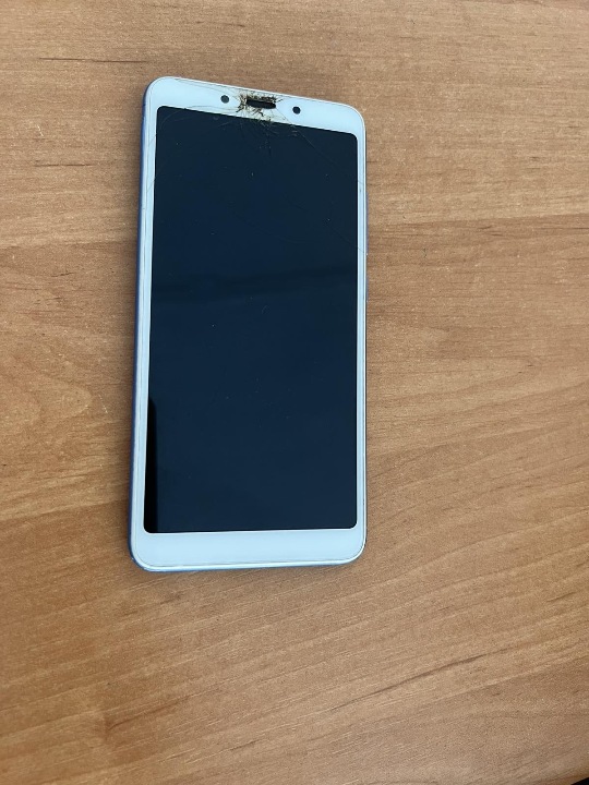 Мобільний телефон марки "Xiaomi Redmi 6А" блакитного кольору з пошкодженим екраном, був у використанні, стан незадовільний. телефон не вмикається.