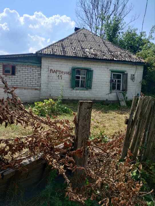 1/2 житлового будинку , місцезнаходження: Черкаська обл., Золотоніський р., с. Благодатне, вул. Партизанська, 11. Загальна площа 59,6 кв.м, житловою площею 27,4 кв.м. Стіни деревяні обкладені цеглою, деревяні віконниці Майно належить згідно договору куплі - продажу 1638, виданий 20.04.2010 , видавник: Приватний нотаріус Кравченок. Стан задовільний. За вказаною адресою зареєстрований , повнолітній власник будинку та дві понолітні особи.