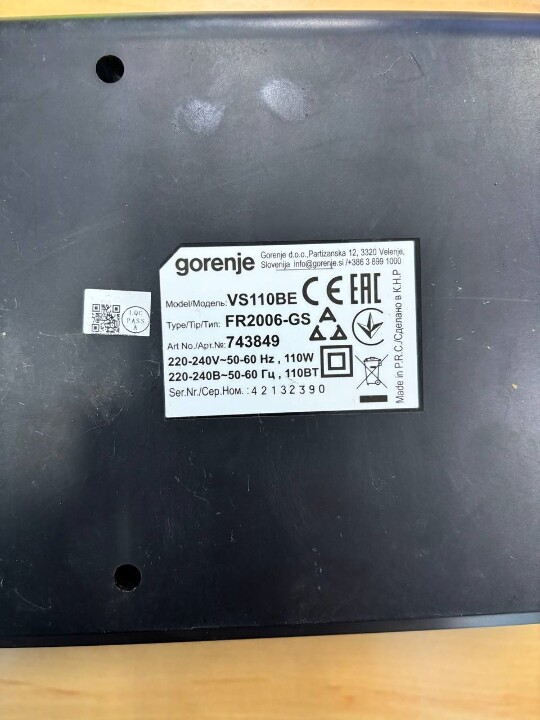 Конфісковане майно за рішенням суду: вакууматор марки «Gorenje» модель VS110BE, майно бувше у використанні. Сколи та подряпини по корпусу. Коробка відсутня. Майно конфісковане за рішенням Сумський районний суду Сумської області від 12.08.2025 справа №587/3190/25