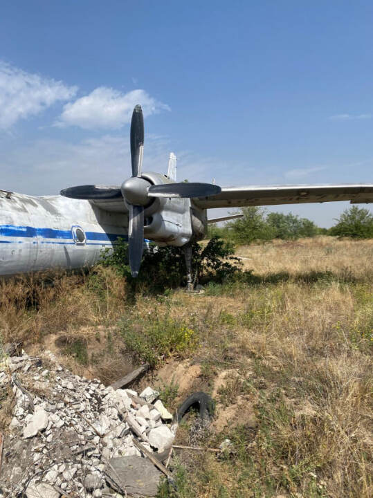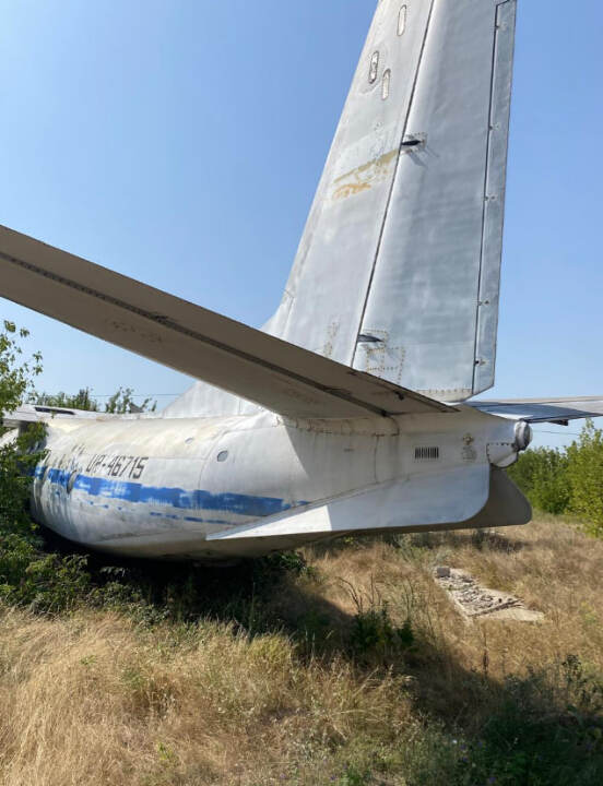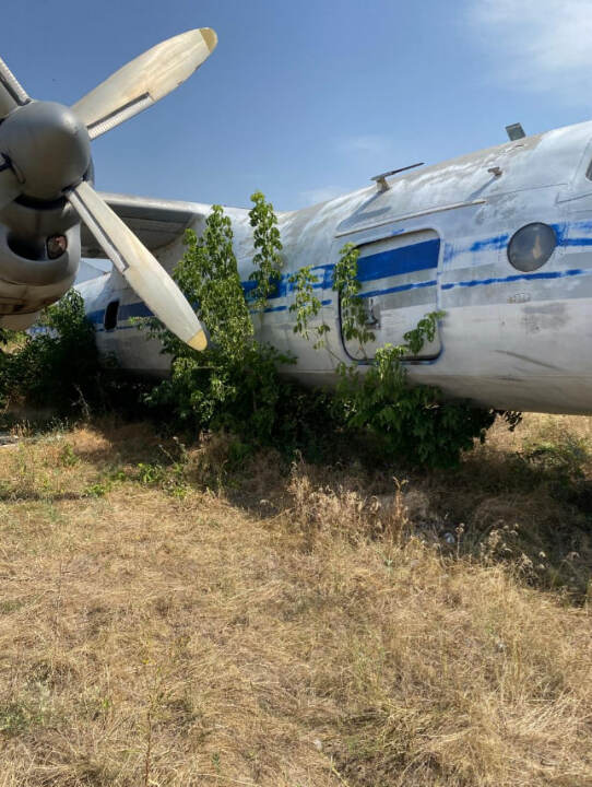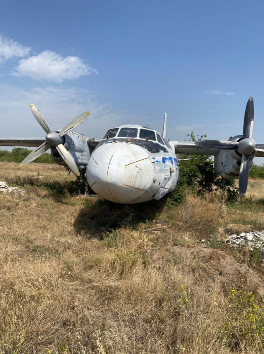 Літак Ан-24РТ, інвентарний № 121, заводський № 9911110. Марка / модель: An-26. Тип двигуна: 2 × турбогвинтовий двигун Івченко АІ-24Т. Вид пального: Авіаційний гас. Пробіг (наліт): невідомий. Комплектація: корпус майже повністю збережений, проте: пошкоджено скло кабіни пілотів, ознаки демонтажу внутрішнього обладнання, корозія на поверхнях, колір: блакитно-білий (залишки фарби з синьою лінією); значне вицвітання, пошкодження фарби.