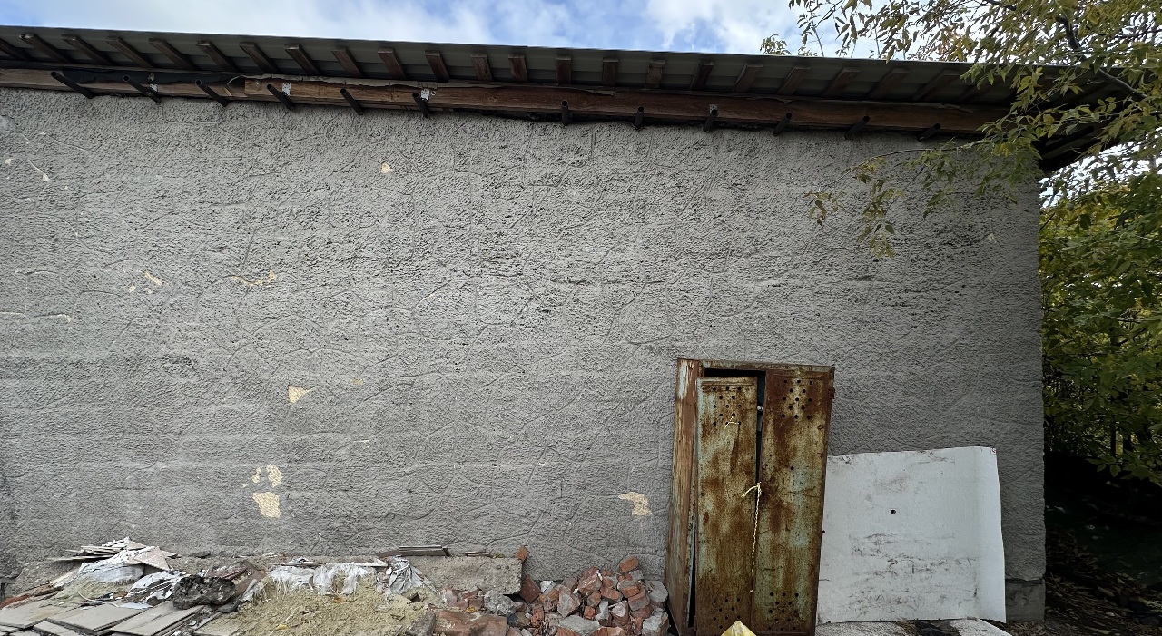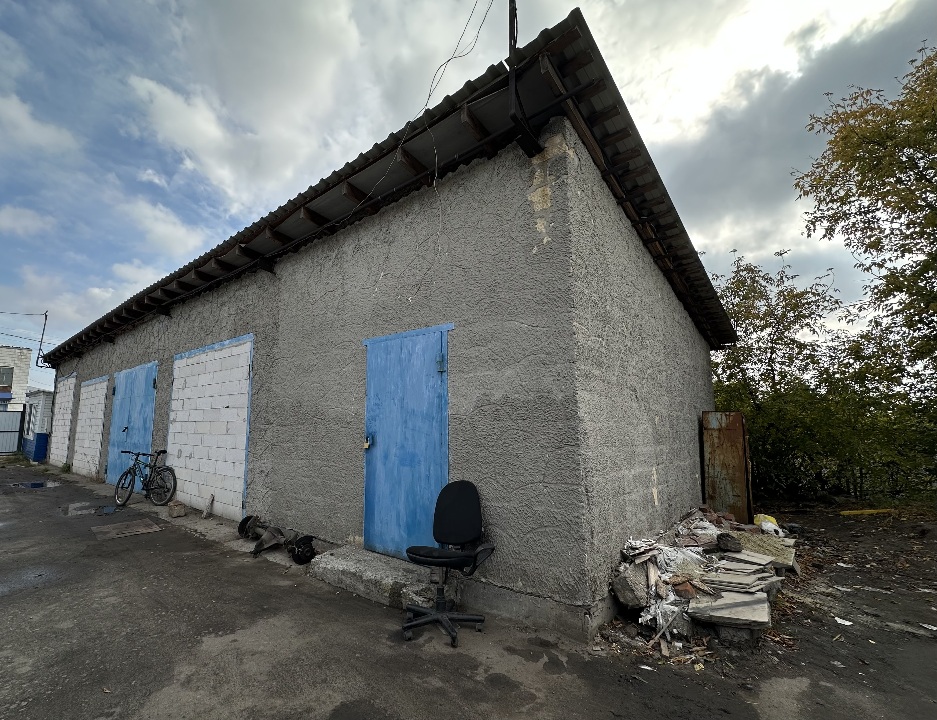 Одноповерхова легкоблочна будівля складу літ. Ж-І з металевою огорожею №1 (1/3), №2, №3 (1/3), рік побудови (не встановлено), розташована на периферії міста.