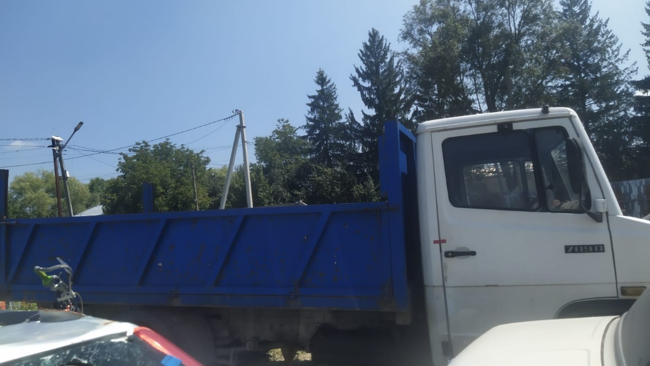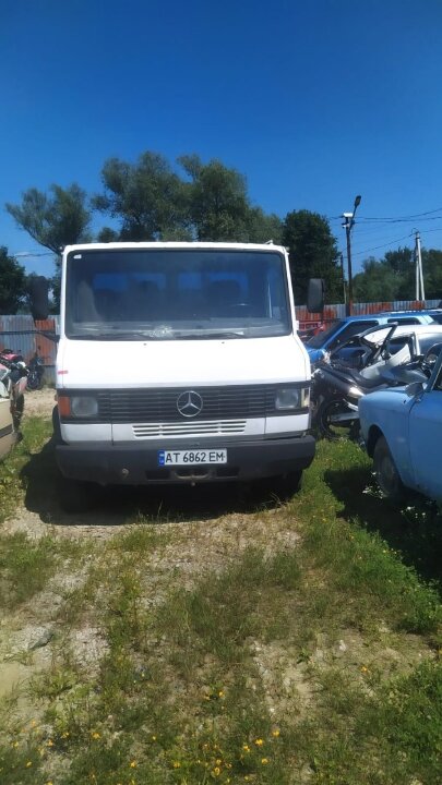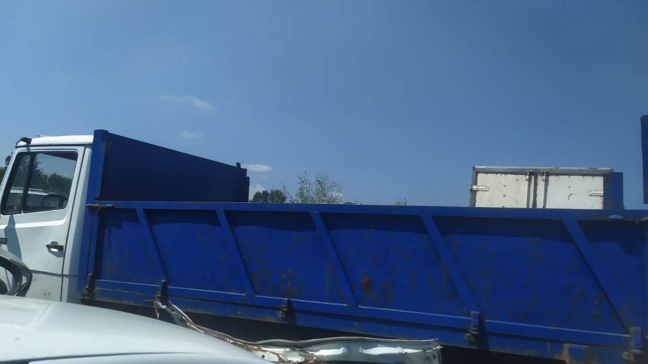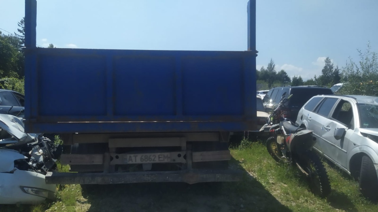 Транспортний засіб марки MERCEDES-BENZ, модель 709, 1991 року випуску, VIN: WDB6690021P121854, реєстраційний номер АТ6862ЕМ, самоскид, білий із синім кузовом.