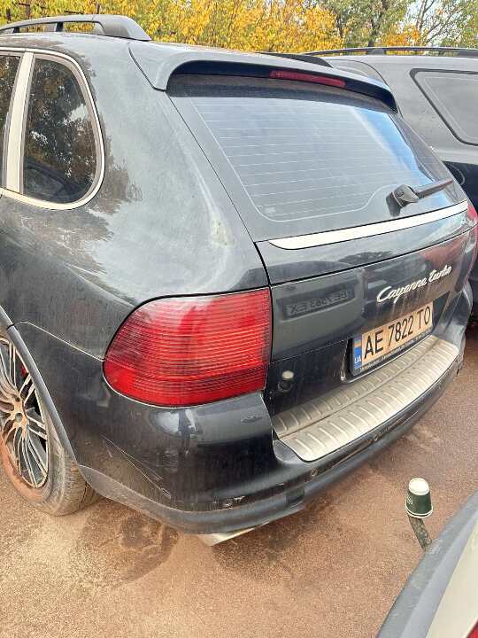 Автомобіль марки PORSCHE модель CAYENNE, 2004 року випуску, реєстраційни номер AE7822TO, колір - чорний, номер кузова-WP1ZZZ9PZ5LA81403 перебуває в незадовільному стані, після ДТП, потребує ремонту, пошкоджена передня частина автомобіля, наявні вмятини та механічні пошкодження складових частин кузова, має пошкодження лакофарбового покриття у вигляді потертостей, подряпин по всьому кузову. техпаспорт та ключі відсутні, відсутній АКБ, пробіг встановити неможливо.
