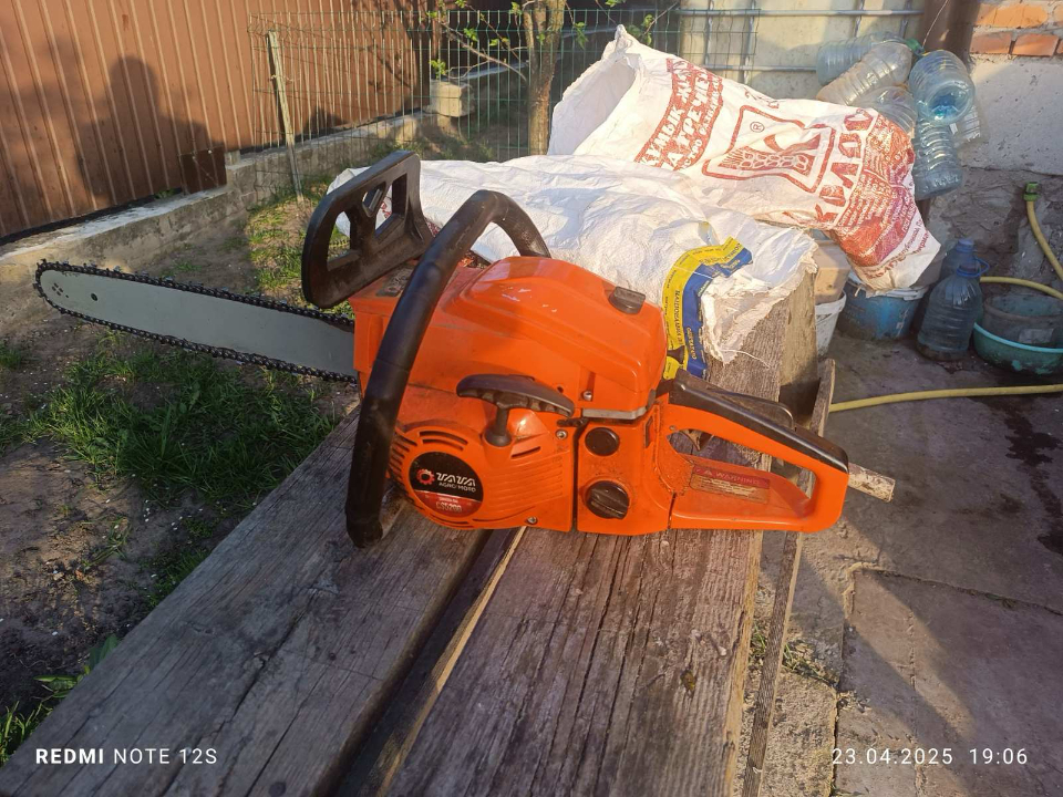 Бензопила ланцюгова марки "TATA Agro Moto", модель CS5200, червоного кольору. Майно конфісковане за виконавчим листом Макарівського районного суду Київської області №370/2878/24 від 07.01.2025 року.