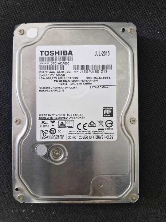 жорсткий диск марки Toshiba з серійним номером «75EGPJ4BSX13», об`ємом 500 GB, SATA 6.0 Gb/s, виробництво Китай, в кількості 1 штука.