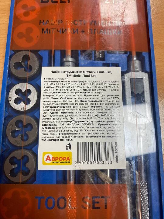 Набір інструментів: мітчики + плашки ТМ «Belt» (21 предмет), у вживаному стані, робочий стан не перевірявся
