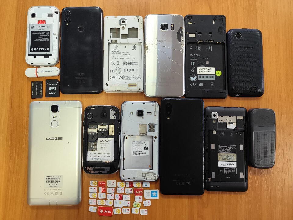 12 мобільних телефонів марок: Lenovo (IMEI16865660026057658;IMEI2:865660026057500),Samsung(IMEI1:35250208162758/9;IMEI2:35250308162758/7), EXPLAY (IMEI1:359229054831690;IMEI2:359229055341699), Nokia (IMEI1:358054/01/557465/5), "LENOVO" IMEI1-865234022191935, 2-86523402256175; "SAMSUNG" IMEI 1-357224073505617/01; 2- 357225073505614/01; "LENOVO" IMEI 1-865229020558499; "LENOVO" IMEI 1-869045021236059, 2-869045021236067; SAMSUNG" IMEI 1-351825/05/288474/4 з сім-картою,"REDMI NOTE 7","GALAXY A 02","DOOGEE Y6 MAX" - Комплектація: без зарядного пристрою та коробки, в деяких телефонах відсутні батареї та задні панелі телефону. Технічний стан: не вмикаються. Зовнішній стан: наявні численні потертості та тріщини на корпусі та подряпини і тріщини на екрані.