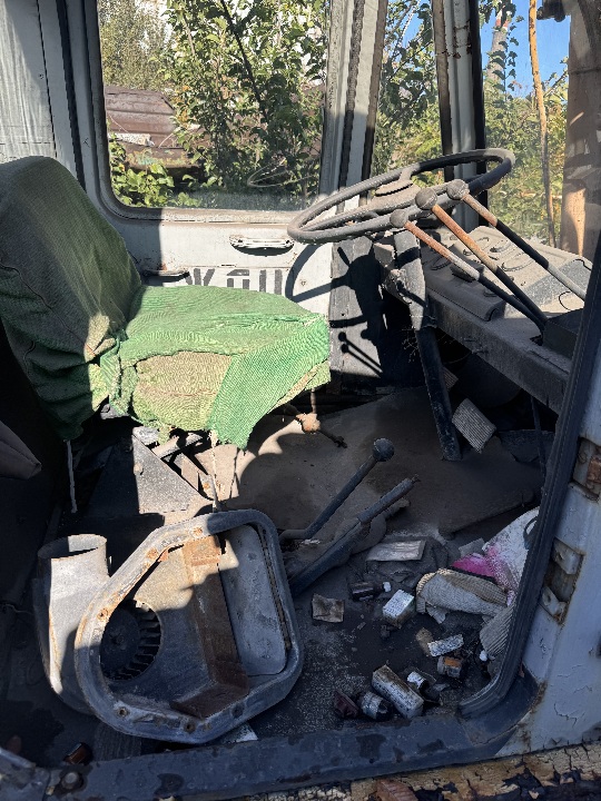 Автонавантажувач має наступні сліди експлуатаційних пошкоджень: в неробочому розкомплектованому стані.