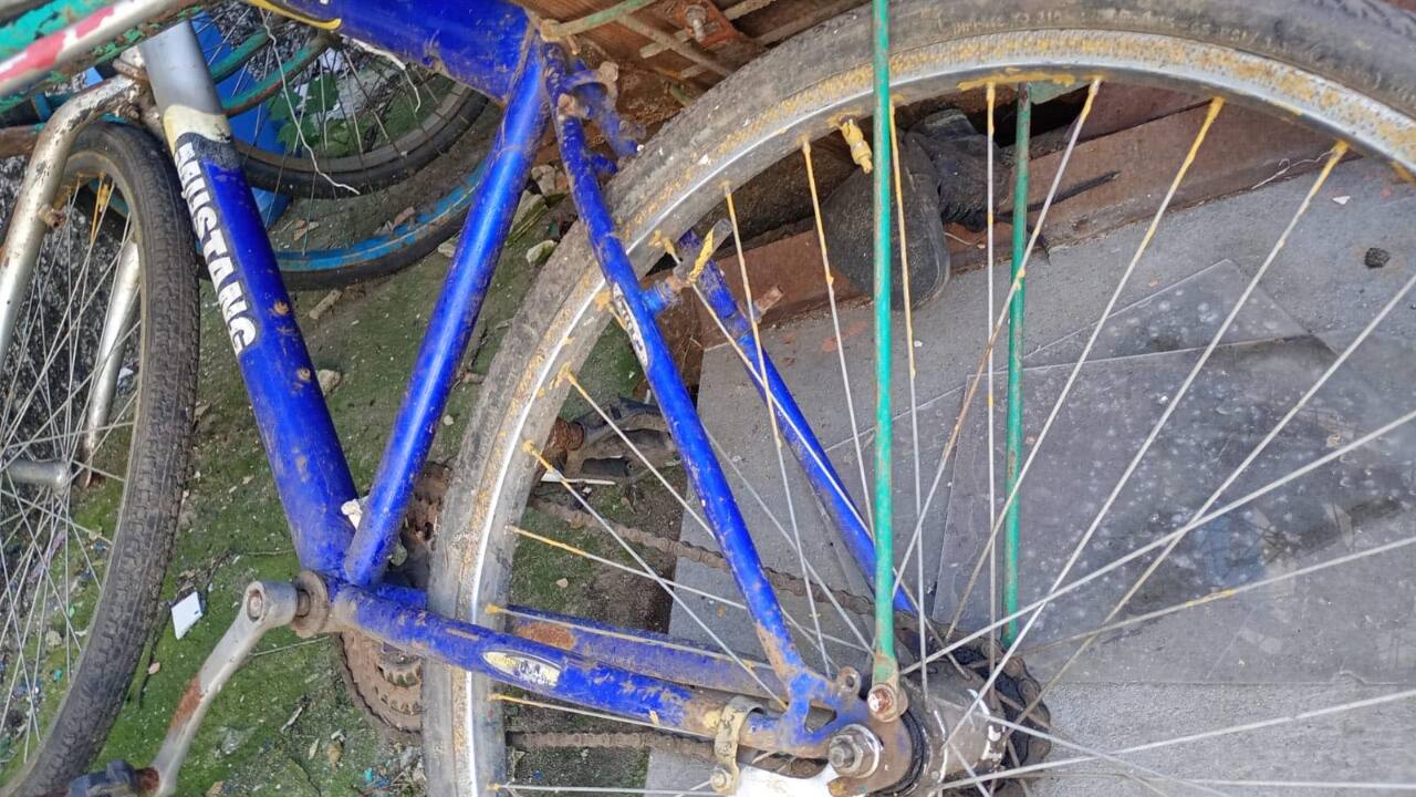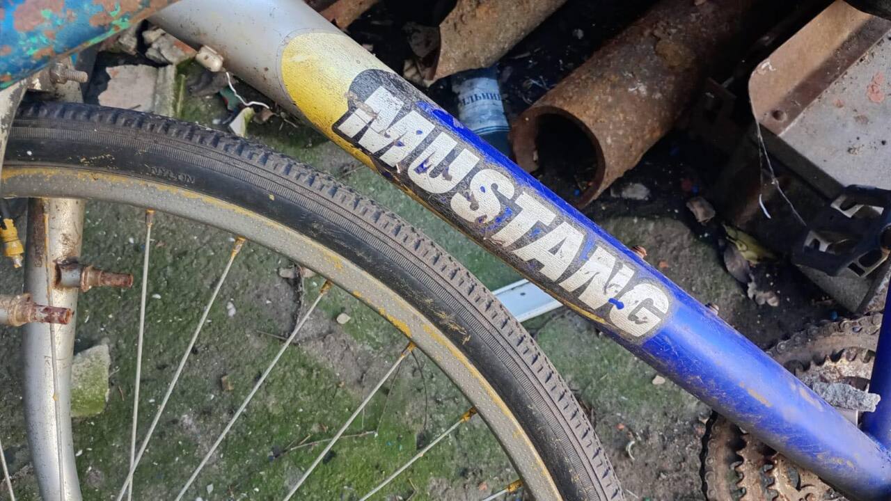 велосипед марки MUSTANG з рамою блакитного кольору конфіскувати, на рамі та диских колес наявна іржа, на вилкі є значні подряпини та облізла фарба, трансмісія знаходиться в незадовільному стані. Майно конфісковане за рішенням Криничанського районного суду, виконавчий лист № 178/1523/23 від 03.06.2024