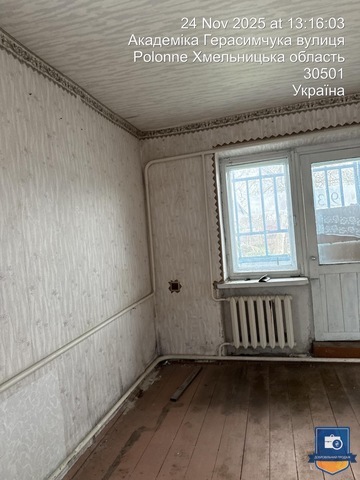Двокімнатна квартира загальною площею 47,9 кв.м, що знаходиться за адресою: Хмельницька обл., м. Полонне, вул. Герасимчука Академіка (колишня вул. Кірова), буд. 193, кв. 1.