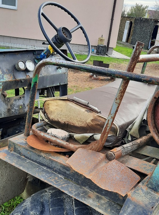 Саморобний трактор синього кольору, вид палива - бензин наявна корозія із саморобним металевим причепом, технічна документація та ключі відсутні, майно конфісковане за рішенням Самбірського міськрайонного суду Львівської області від 24.04.2024р. №452/155/24