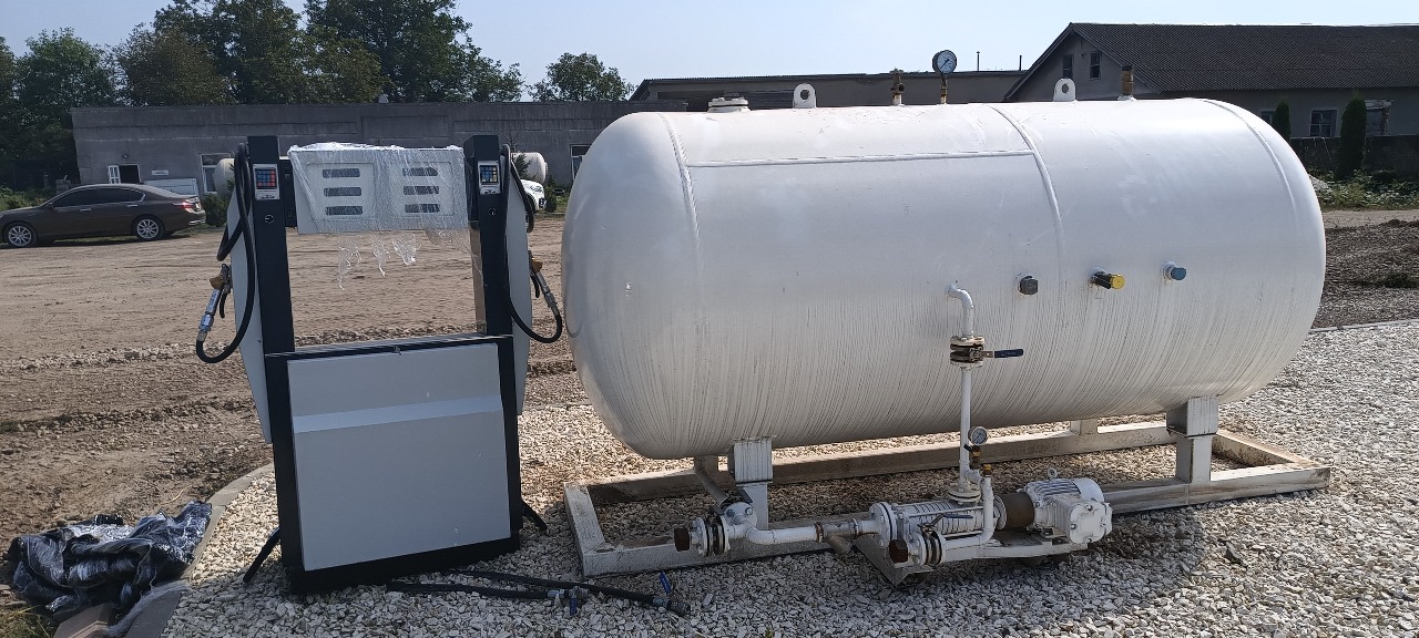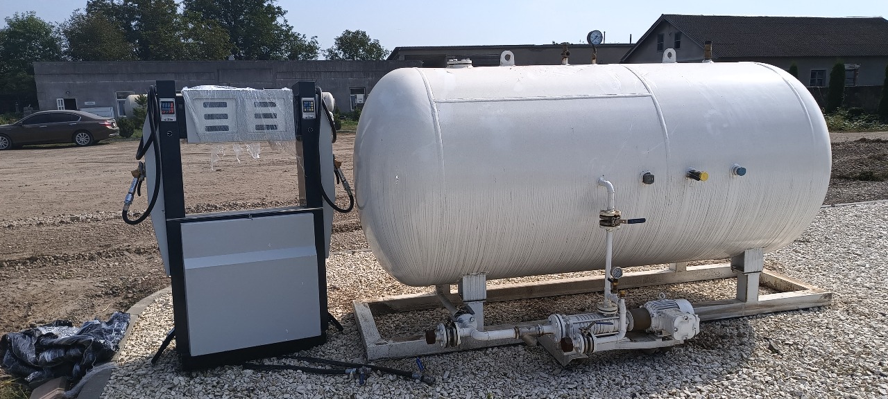 Моноблоковий комплекс для заправки автомобілів зрідженим газом марки СЗГ LPG-10H обладнаний дворукавною паливороздавальною колонкою PRIMUS 002 LPG.