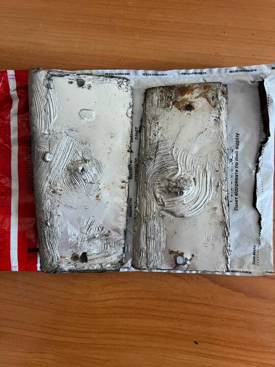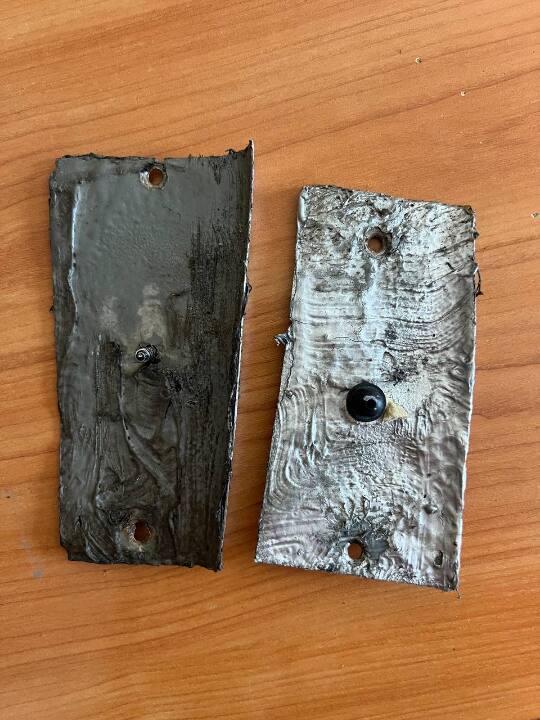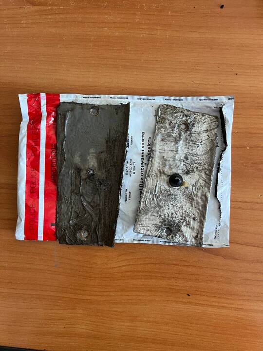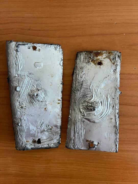 9) дві саморобні металеві накладки до автомобіля,
