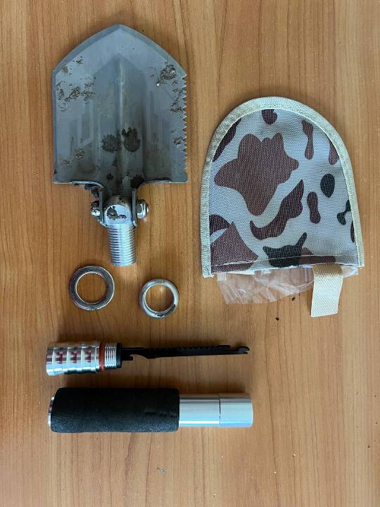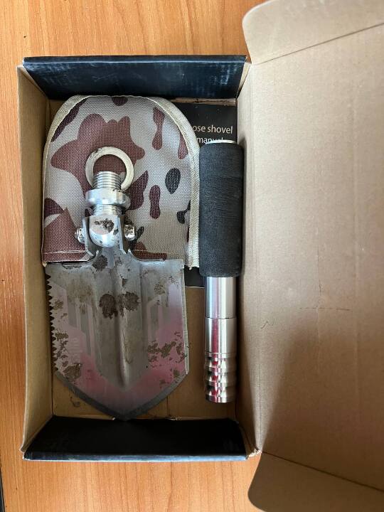 1) картонна коробка від лопати та металева лопата,