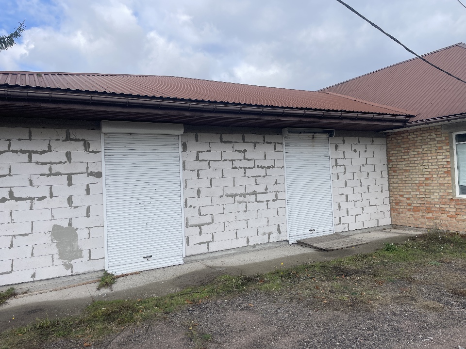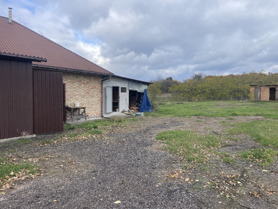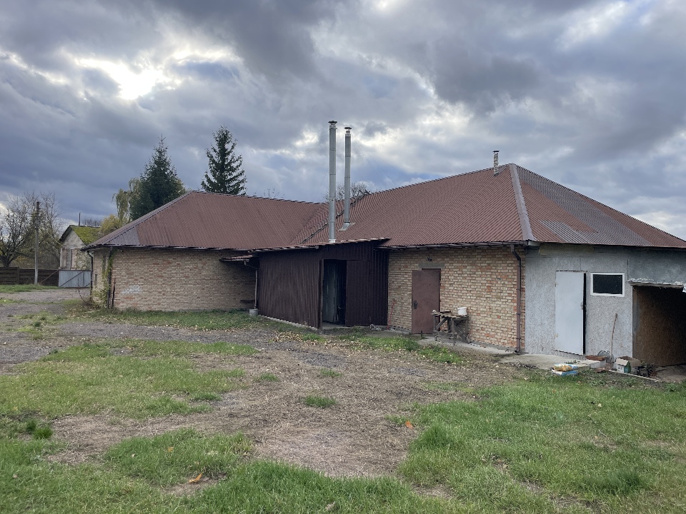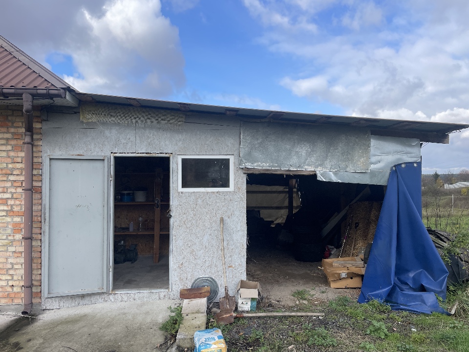 Матеріал фундаменту будівлі: бетон; матеріал стін будівлі: цегла, газоблок, метал, ДСП; матеріал покрівлі: металопрофіль; перекриття дерев’яне та металеве; підлога: цементна стяжка, земля.