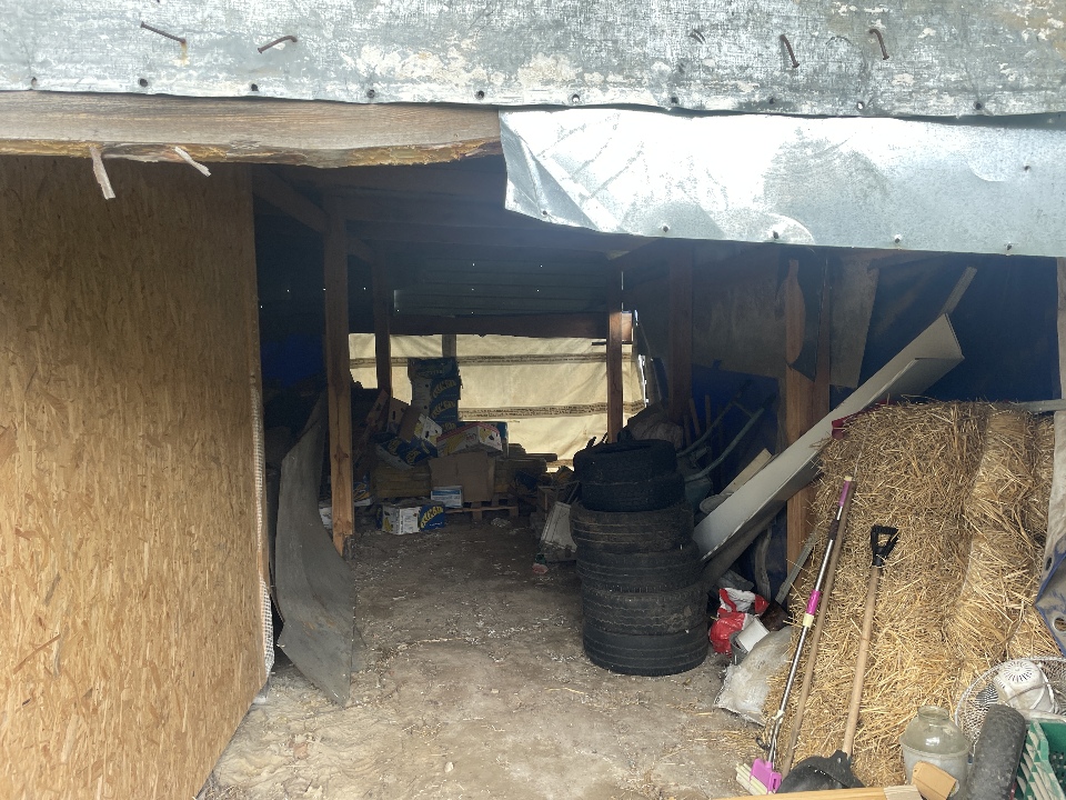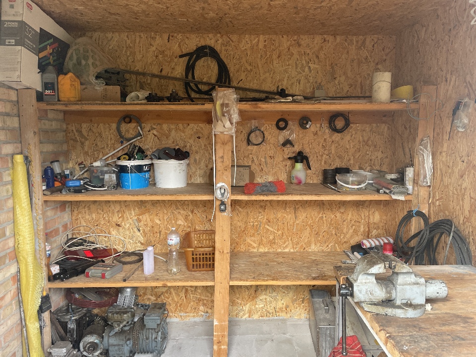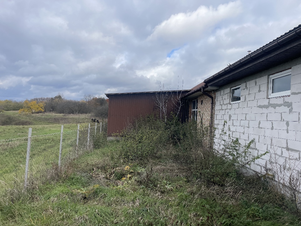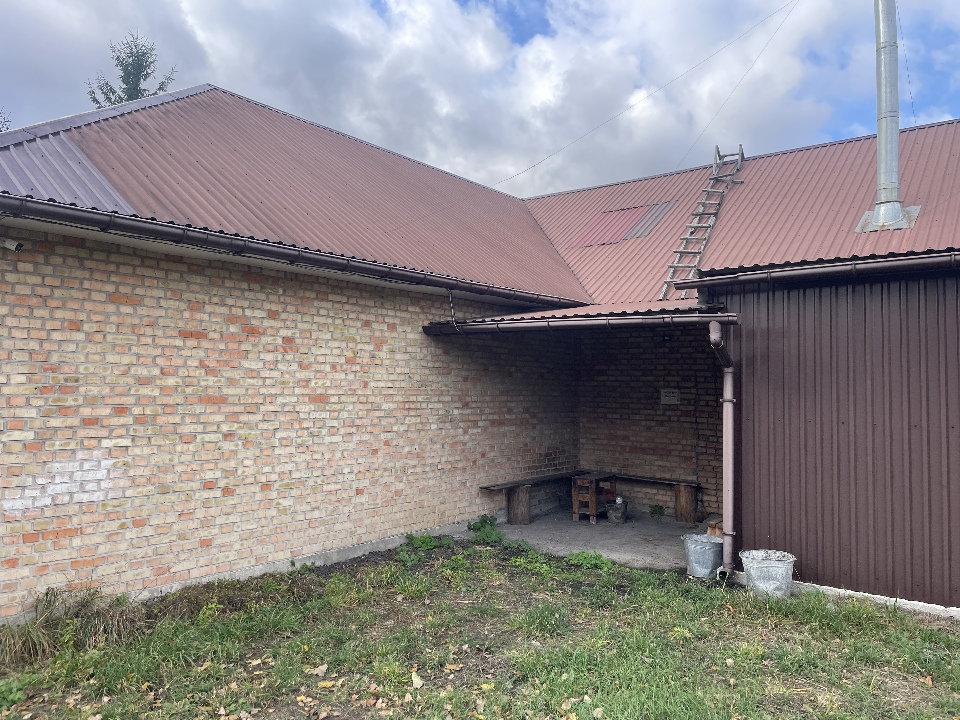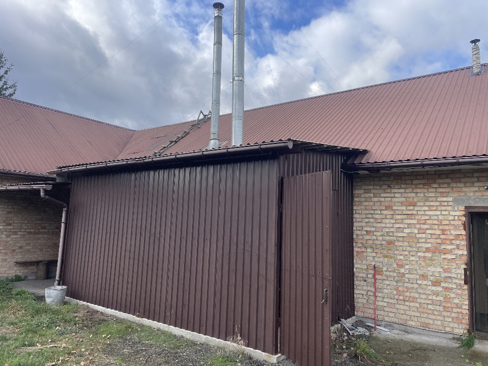 Матеріал фундаменту будівлі: бетон; матеріал стін будівлі: цегла, газоблок, метал, ДСП; матеріал покрівлі: металопрофіль; перекриття дерев’яне та металеве; підлога: цементна стяжка, земля.