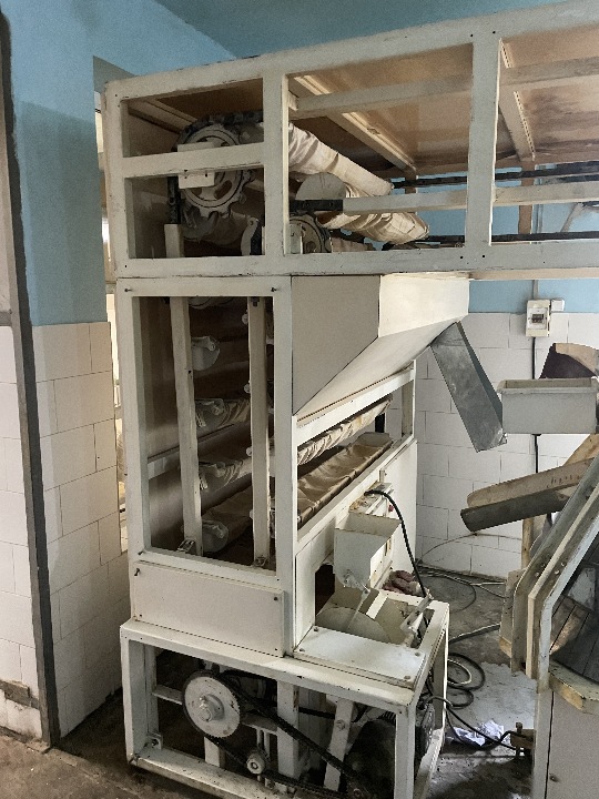 - Борошнопросіювач бежевого кольору, марка та модель невідомі, з 3-охфазним електродвигуном Tamel 2Sg90L4, потужністю 1,5 кВт, серійний № 44868997/12.