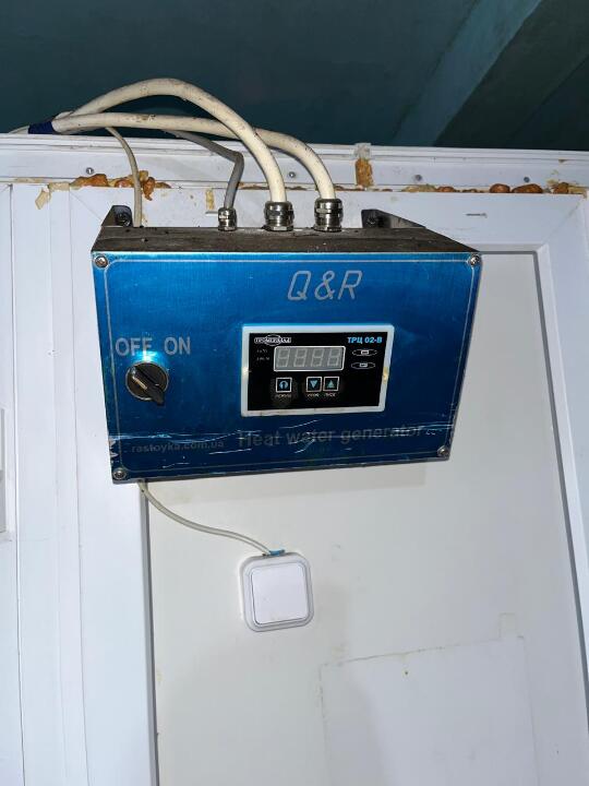 - Камера розстоювання для тіста з 4 металопластиковими дверима, площею 6,6 кв.м., висота: 2,08 м, з встановленим всередині тепловологогенератором Q&R потужністю 6 кВт, країна виробництва: Україна