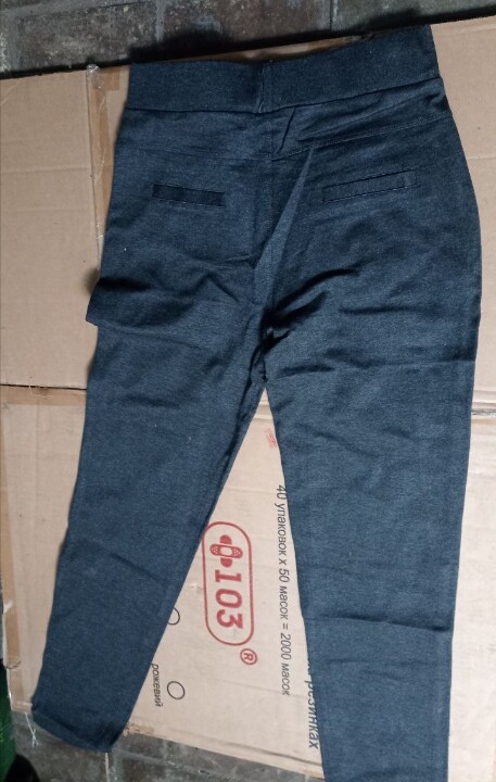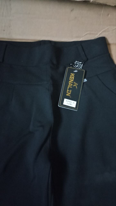 Брюки жіночі, чорного та темно-сірого кольорів, котонові, з брелком у форми квітки та ярликом з написом «Sundker», із паперовою биркою з назвою фірми «Kenalin Since 1995», у кількості 480 пар.