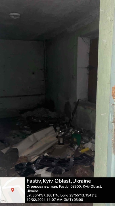 вбудоване нежитлове цокольне приміщення,загальна площа 131,00 кв.м, має окрему вхідну групу та потребує ремонту яке розташоване за адресою: Київська обл., м. Фастів, вул. Строкова 2.( реєстраційний номер обєкта нерухомого майна 2819917732140), підстава виникнення права власності рішення про державну реєстрацію прав та їх обтяжень, індексний номер № 69930544 від 26.10.2023. Земельна ділянка не є предметом реалізації.