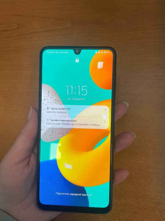 Мобільний телефон ТМ "SAMSUNG GALAXY М32", модель SM-M325FV/DS, IMEI1: 355128630872117, ІМЕІ2: 355526320872117 із встановленими СІМ-картами з абонентськими номерами +380662162272, +380997556752. Стан: б/в, робочий стан не перевірявся, колір синій, наявність чохла чорного кольору, наявне відшарування захисної плівки, потертості, зарядний пристрій відсутній. Конфіскація згідно з виконавчим листом № 697/1706/25, виданим 23.09.2025 Канівським міськрайонним судом Черкаської області.