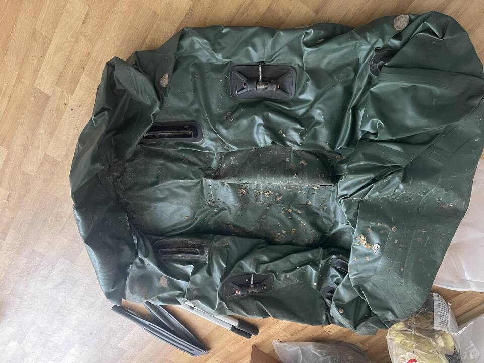 Гумовий човен зеленого кольору марки «Catran» з двома алюмінієвими веслами, є незначні потертості на човні, наявні декілька наклеяних латок розміром 5 см, бувший у користуванні, робочий стан не перевірявся. Майно конфісковане за рішенням Криничанського райсуд, вмконавчий лис № 178/994/25 від 16.06.2025 .
