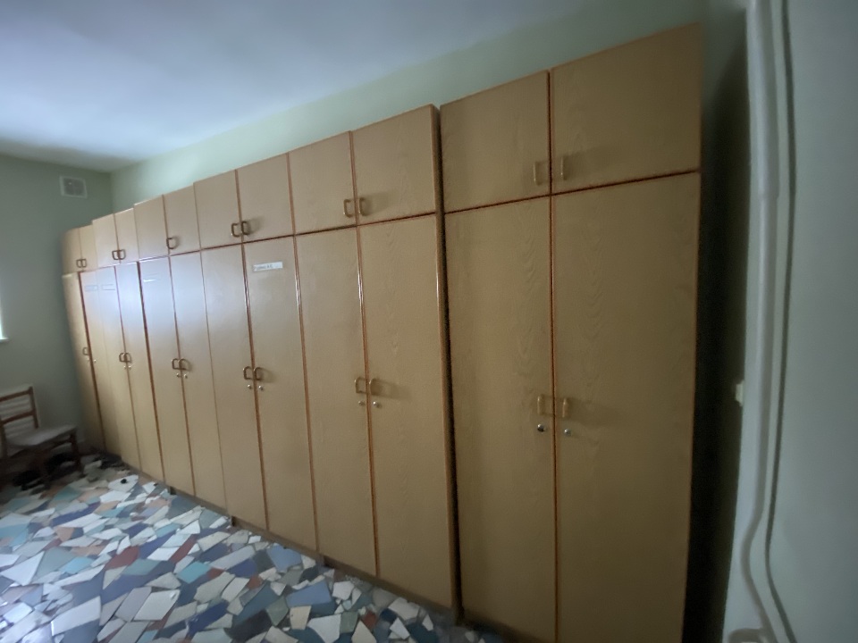 Шафа дводверна коричневого кольору, б/в, 13 одиниць. Використовується для зберігання особистих речей