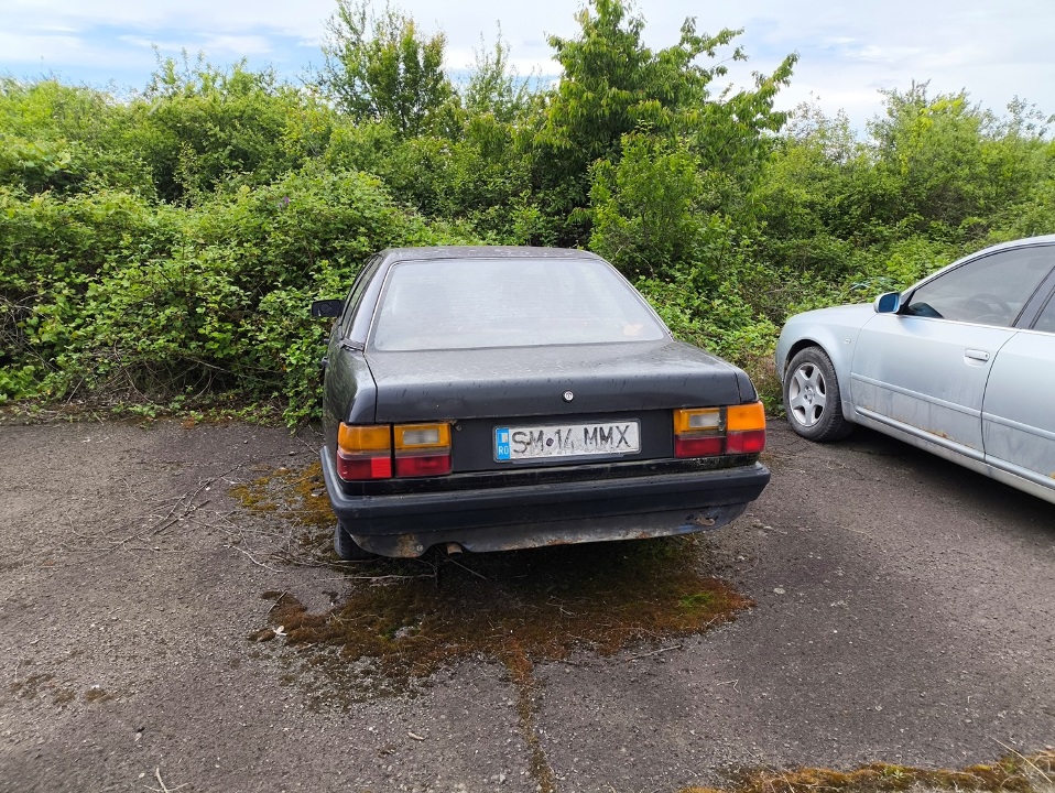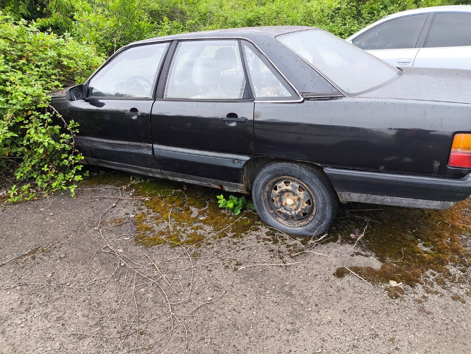 Легковий автомобіль марки "AUDI", моделі "100", 1985 р.в., кузов № WAUZZZ44ZFN088159, рнз Румунії SM14MMX, синього кольору, перебуває у незадовільному стані, сліди відновлювального ремонту по всьому кузову, корозійні ушкодження елементів кузова, у тому числі і наскрізні, автомобіль тривалий час простоює на відкритому майданчику, потребує пуско-налагоджувальних робіт, свідоцтво про реєстрацію ТЗ та ключ замка запалювання відсутні.