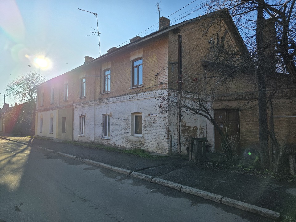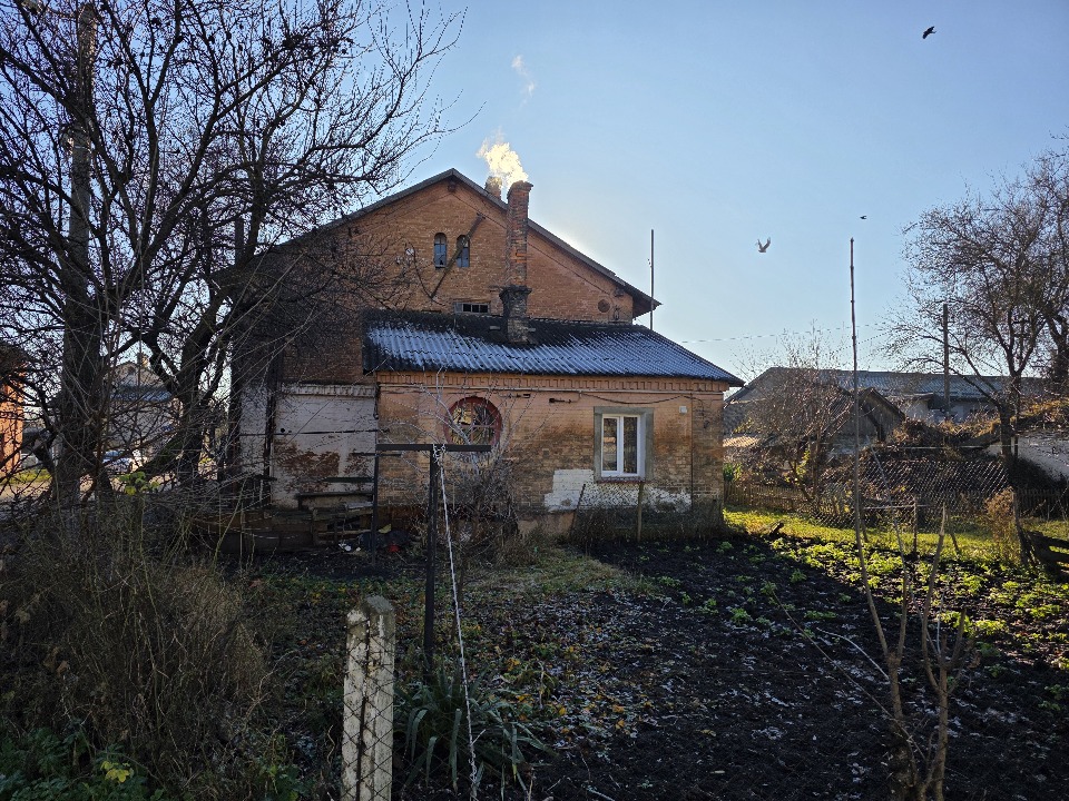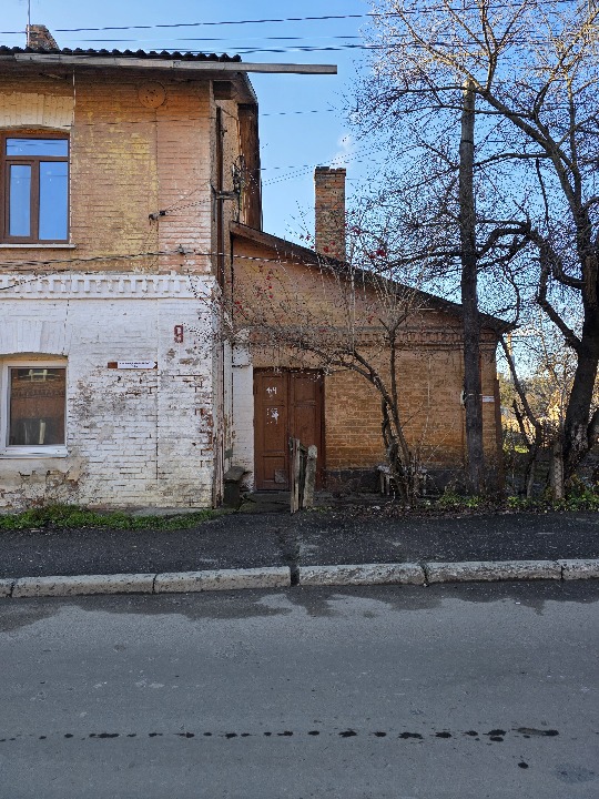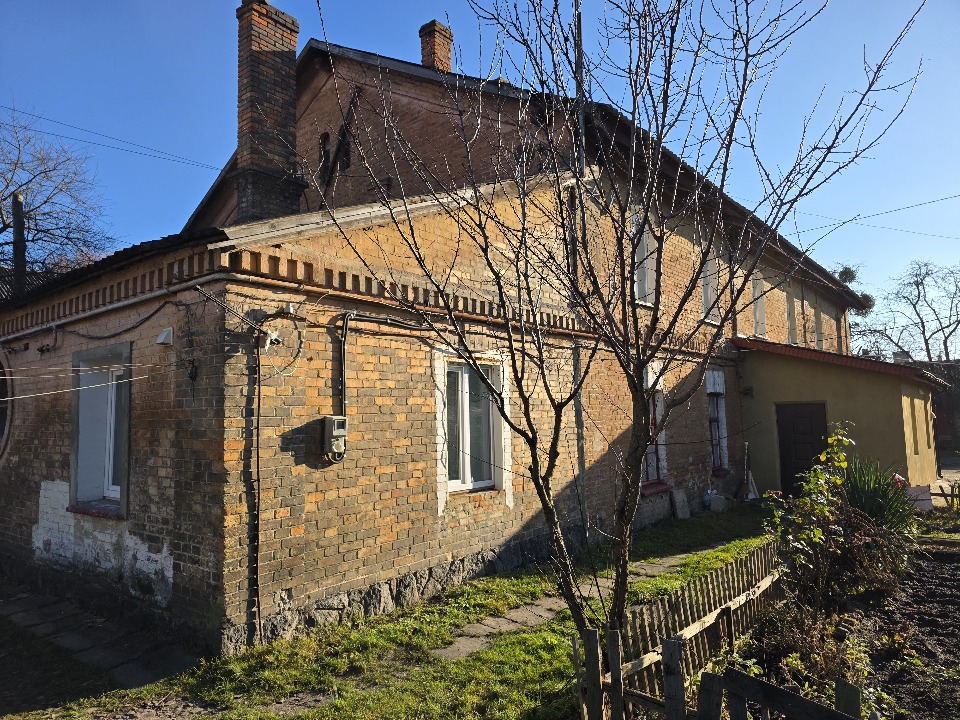Згідно технічного паспорта фундамент - цегла, стіни - цегла, перекриття - дерево, підлога - дерево, лінолеус, ОСБ, керамічна плитка.