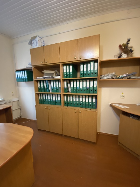 Комплект меблів для офісу: шафа офісна з відкритими полицями, б/в, 2 одиниці та шафа офісна дводверна, б/в,1 диниця. Використовуються як шафа для документів та шафа для одягу.