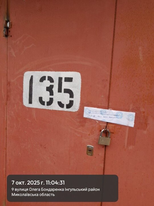 гараж, загальною площею 17,4 кв.м, місце знаходження м.Миколаїв, вул. Олега Бондаренко, автогаражний кооператив "Чайка", гараж №135 , право власності: форма власності: приватна, частка власності: 1/1